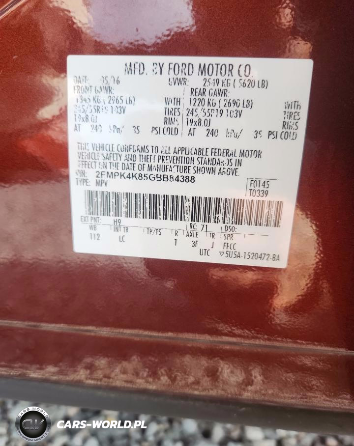 Copart Nr: C-49288496 VIN: 2FMPK4K85GBB84388 Port: Savannah, GA