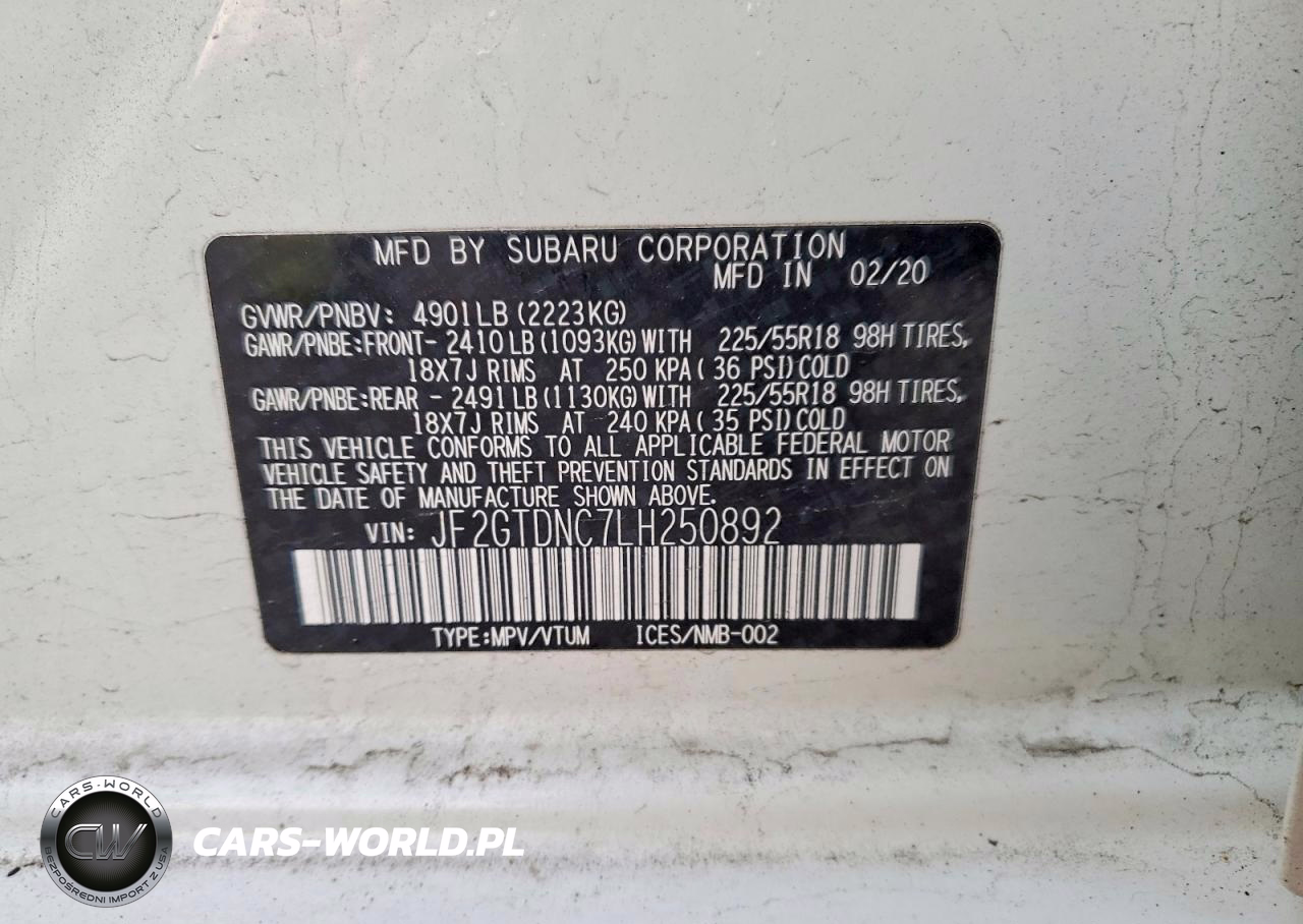 Copart Nr: C-49310746 VIN: JF2GTDNC7LH250892 Port: Elizabeth, NJ