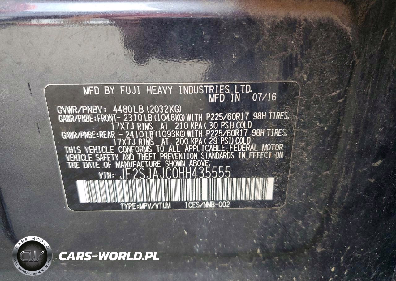 Copart Nr: C-49319746 VIN: JF2SJAJC0HH435555 Port: Houston, TX