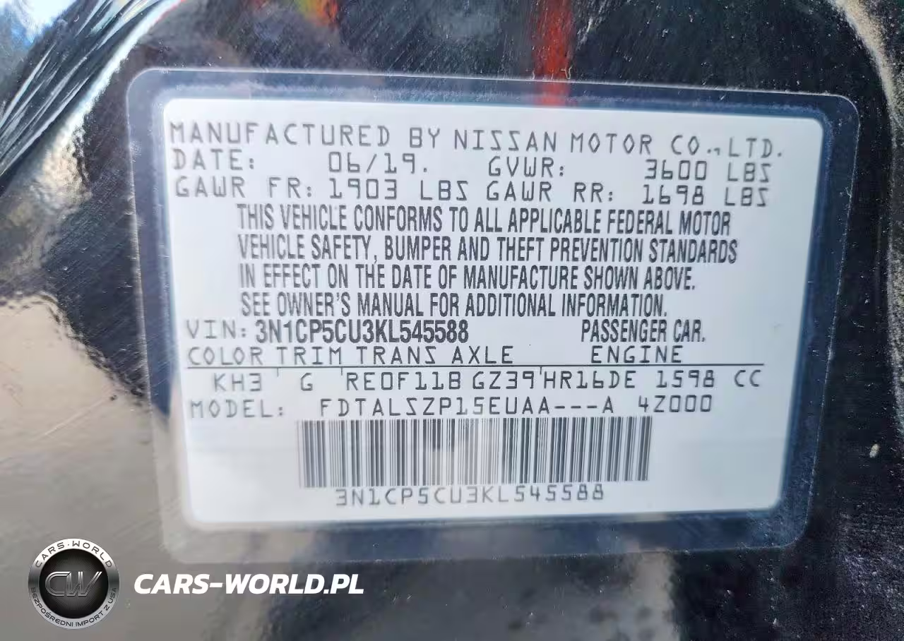 Copart Nr: C-49333406 VIN: 3N1CP5CU3KL545588 Port: Houston, TX