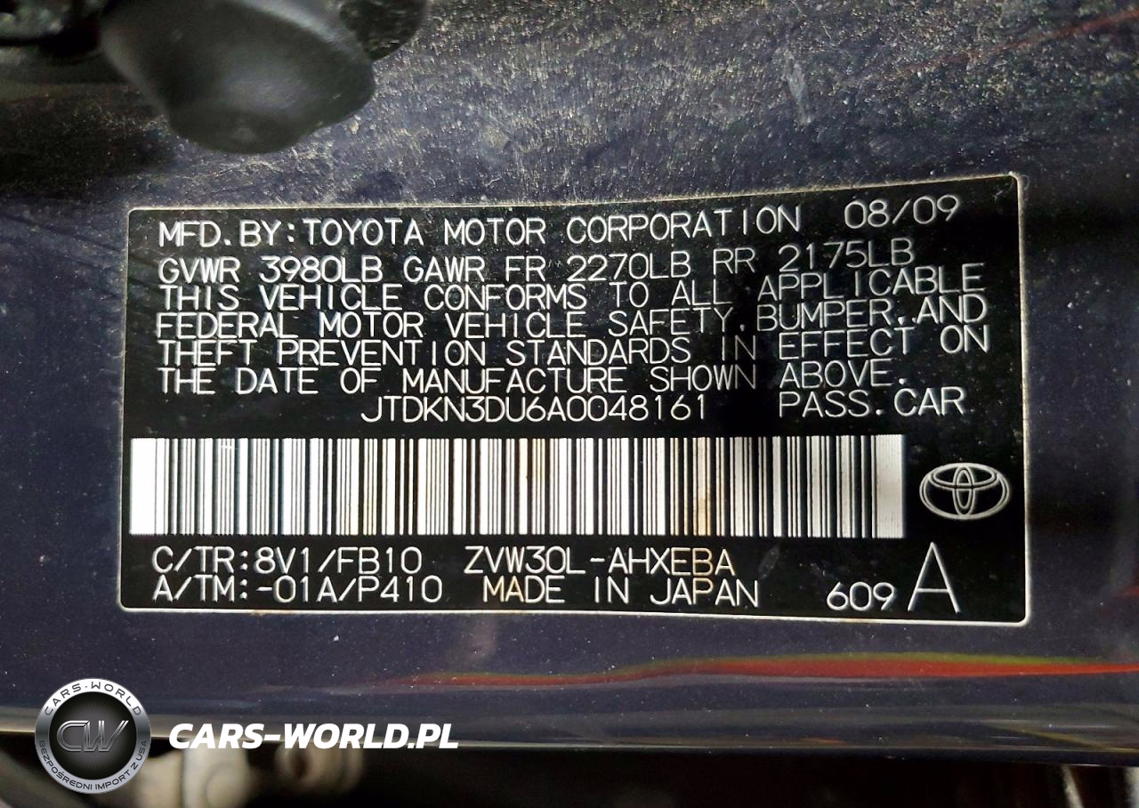 Copart Nr: C-49347346 VIN: JTDKN3DU6A0048161 Port: Indianapolis, IN