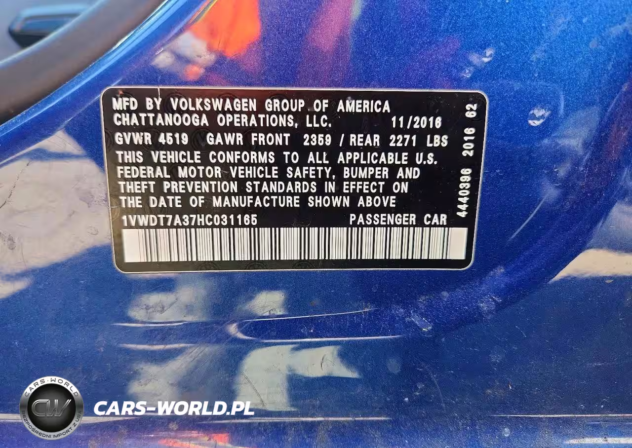 Copart Nr: C-49367796 VIN: 1VWDT7A37HC031165 Port: Elizabeth, NJ