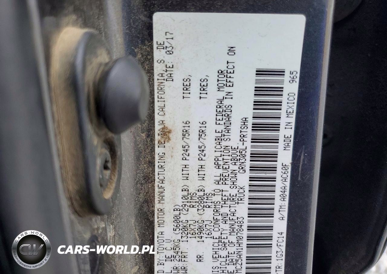 Copart Nr: C-49375926 VIN: 3TMCZ5AN1HM078483 Port: Indianapolis, IN
