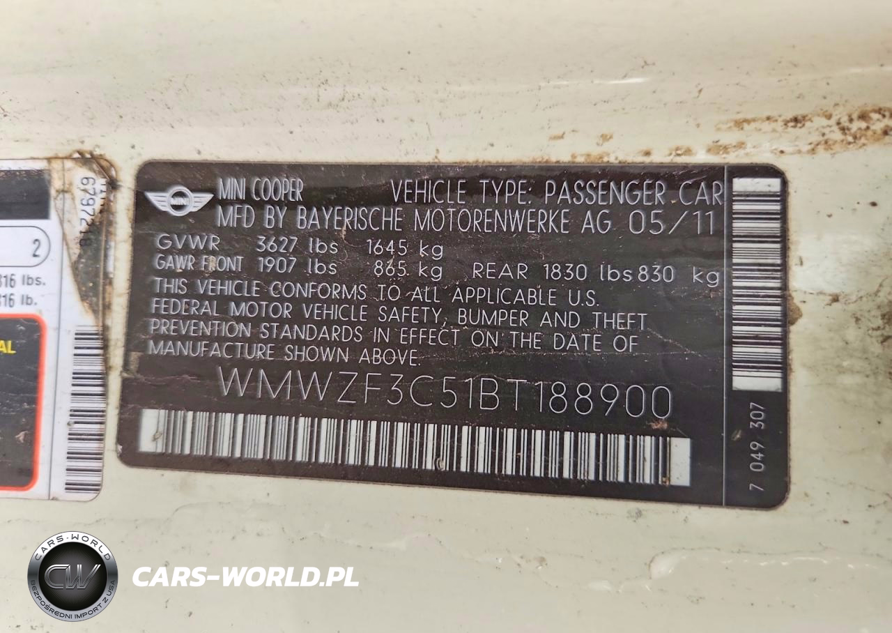 Copart Nr: C-49393996 VIN: WMWZF3C51BT188900 Port: Elizabeth, NJ