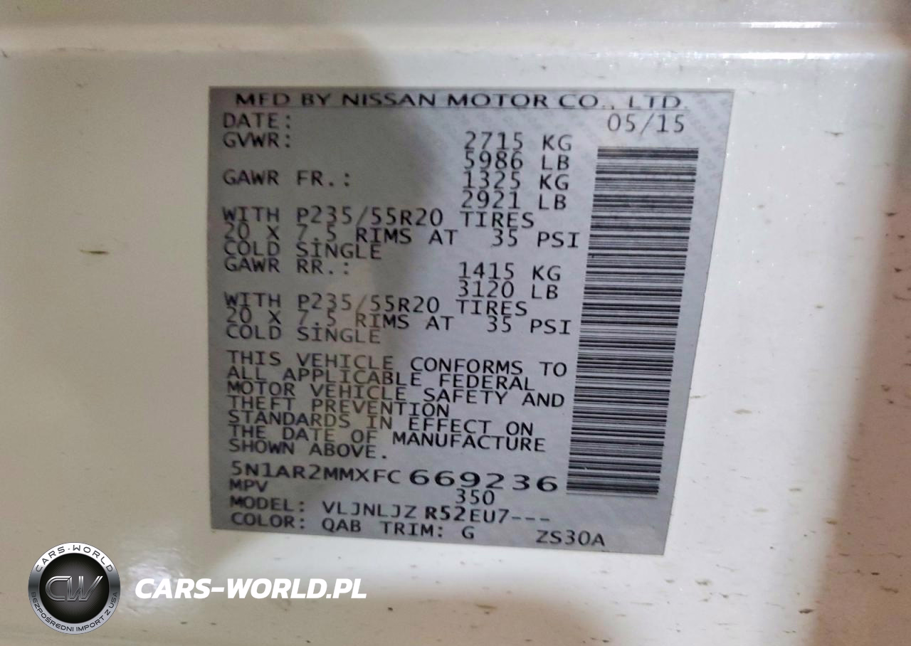 Copart Nr: C-49400826 VIN: 5N1AR2MMXFC669236 Port: Elizabeth, NJ