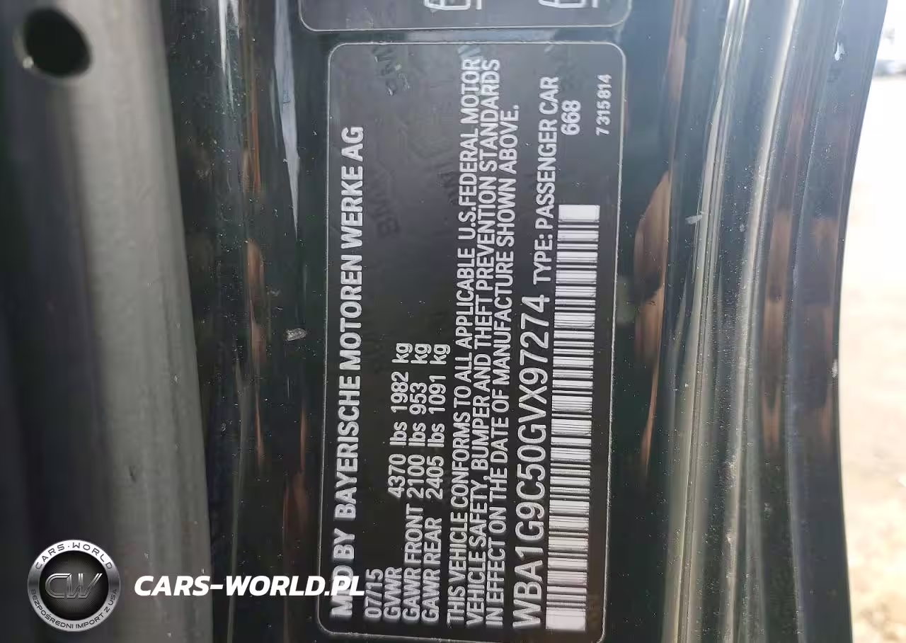 Copart Nr: C-49413586 VIN: WBA1G9C50GVX97274 Port: Elizabeth, NJ
