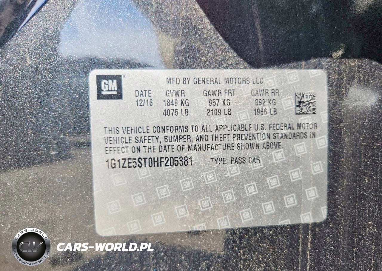 Copart Nr: C-49419366 VIN: 1G1ZE5ST0HF205381 Port: Elizabeth, NJ