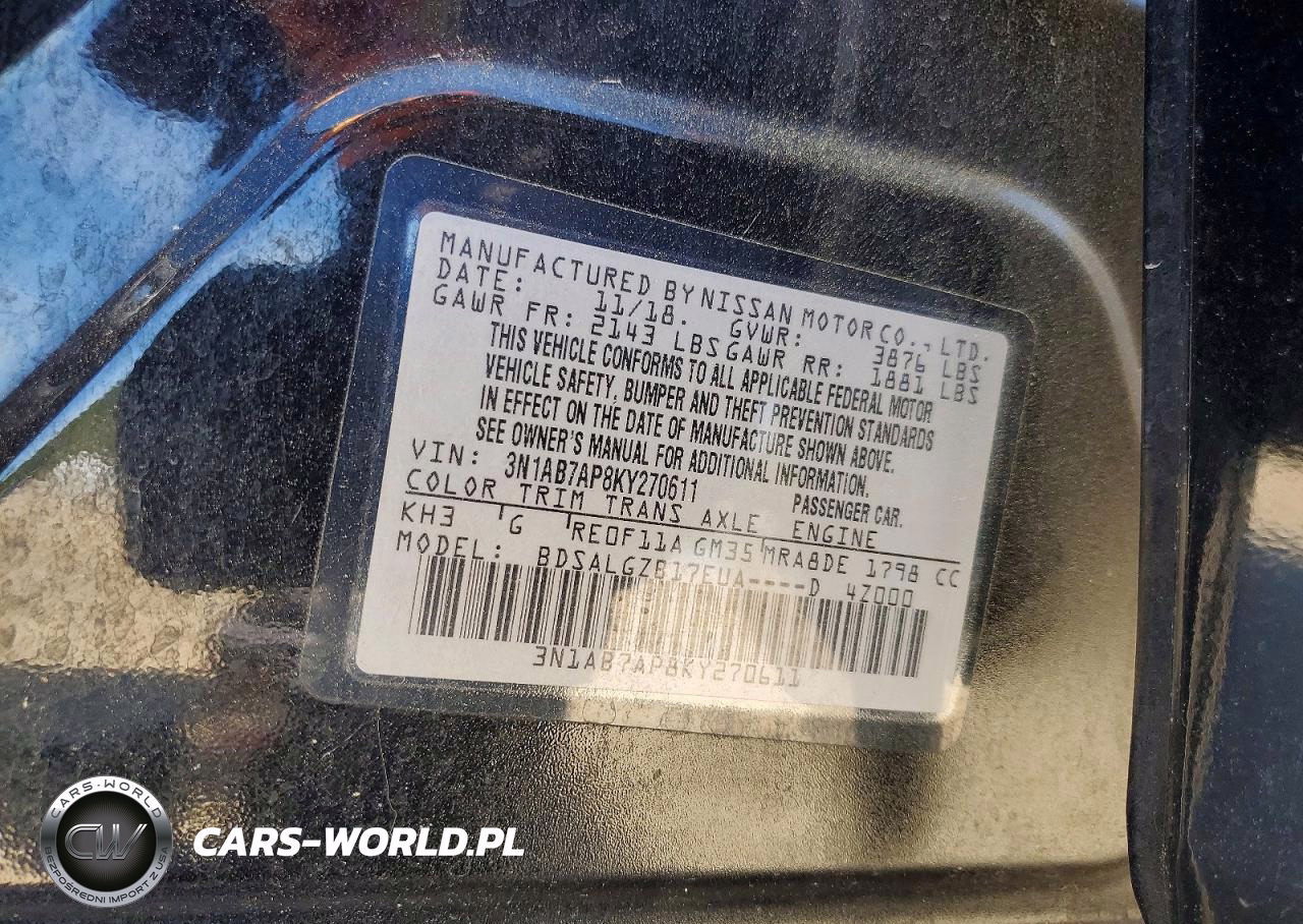 Copart Nr: C-49430286 VIN: 3N1AB7AP8KY270611 Port: Savannah, GA