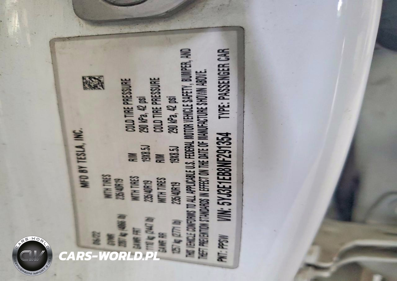 Copart Nr: C-49439686 VIN: 5YJ3E1EB8NF291354 Port: Elizabeth, NJ