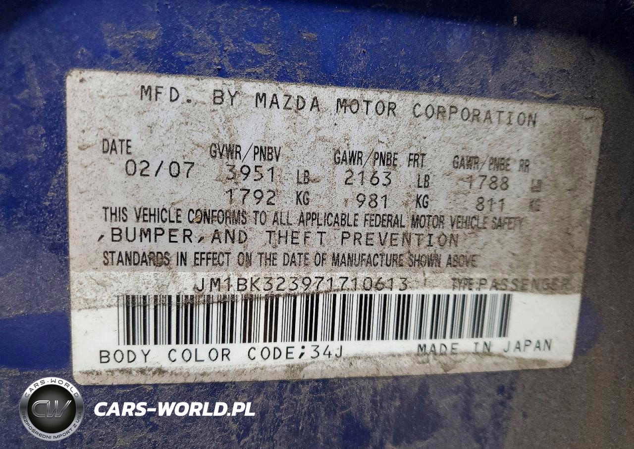 Copart Nr: C-49440086 VIN: JM1BK323971710613 Port: Elizabeth, NJ