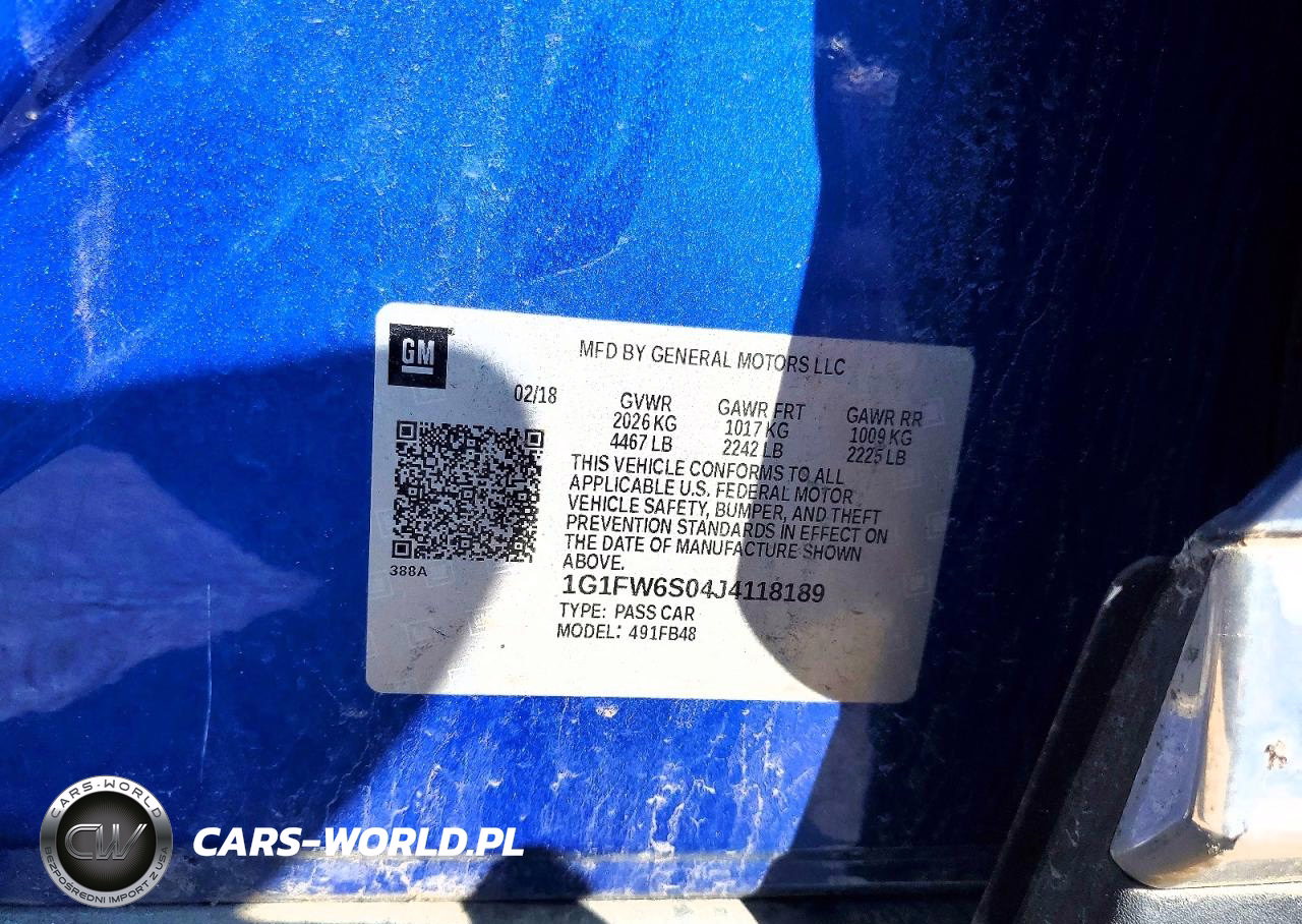 Copart Nr: C-49443676 VIN: 1G1FW6S04J4118189 Port: Elizabeth, NJ