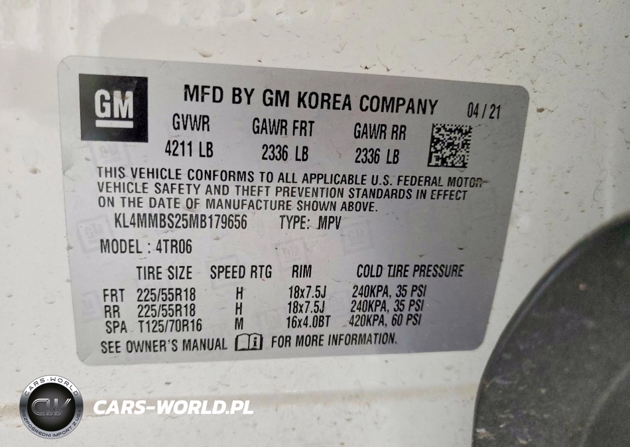 Copart Nr: C-49458536 VIN: KL4MMBS25MB179656 Port: Houston, TX