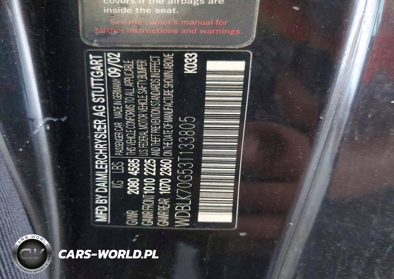 Copart Nr: C-49470956 VIN: WDBLK70G53T133805 Port: Los Angeles, CA
