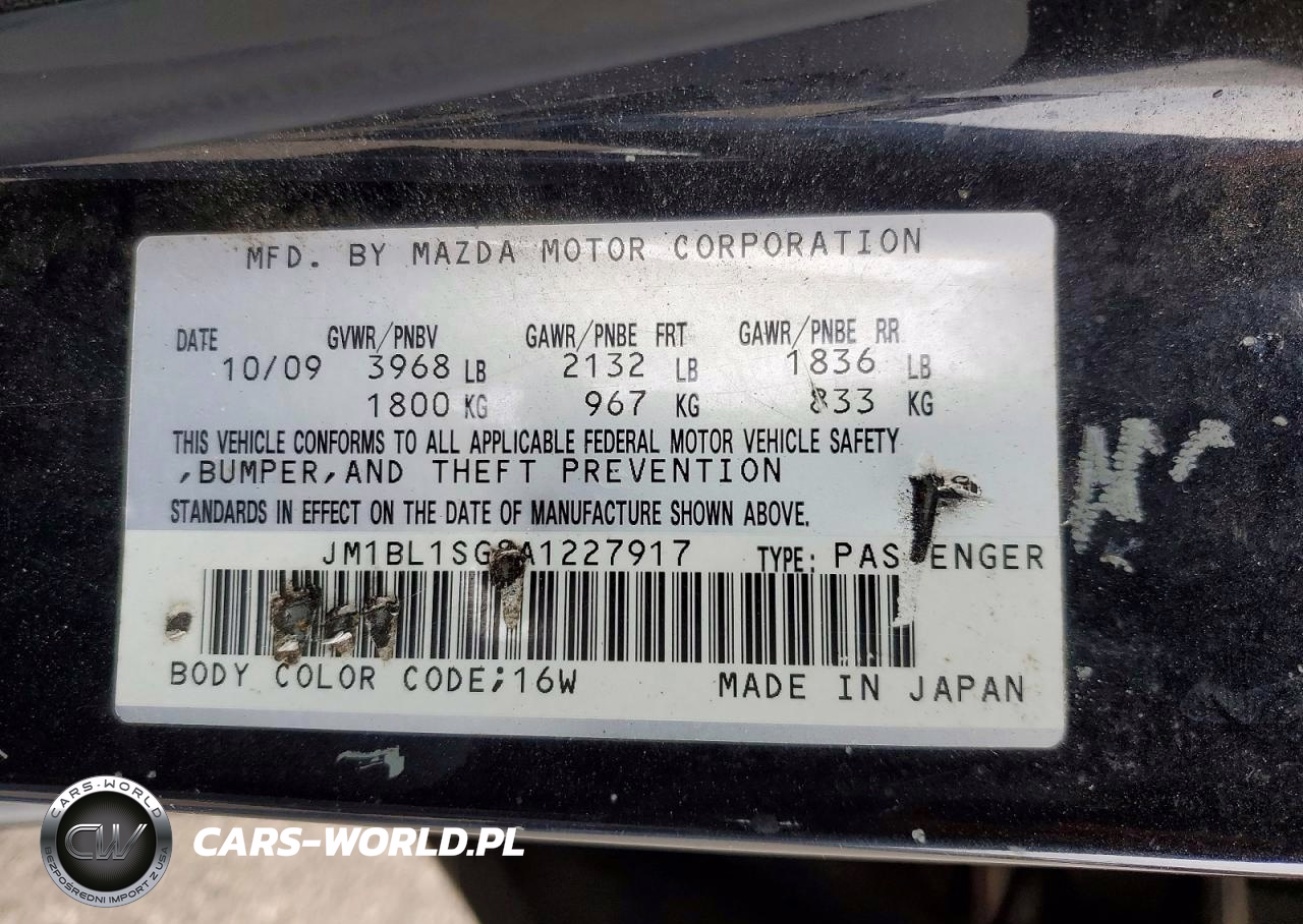 Copart Nr: C-49476236 VIN: JM1BL1SG8A1227917 Port: Elizabeth, NJ