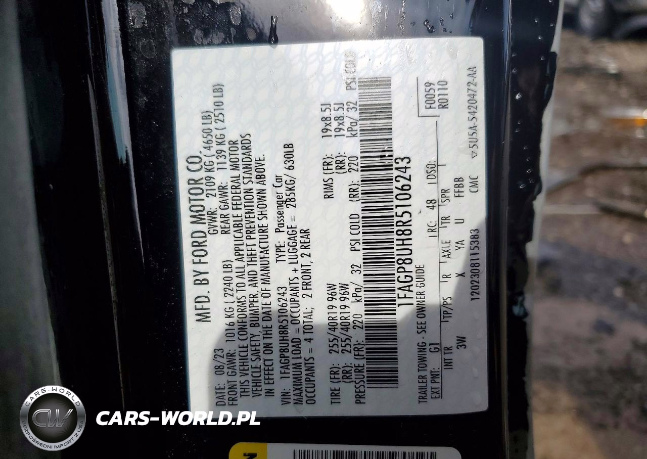 Copart Nr: C-49478896 VIN: 1FAGP8UH8R5106243 Port: Indianapolis, IN