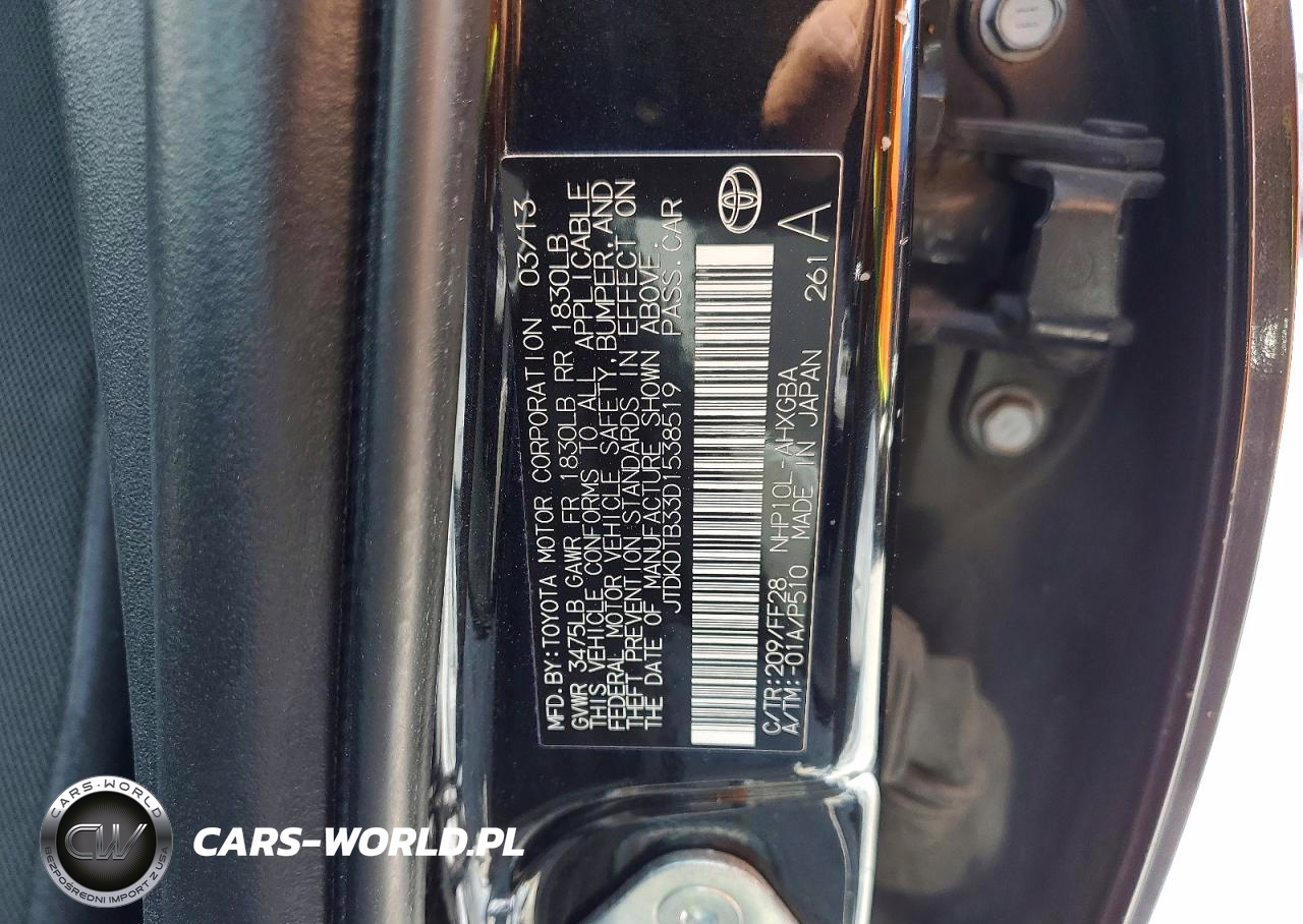Copart Nr: C-49480456 VIN: JTDKDTB33D1538519 Port: Savannah, GA