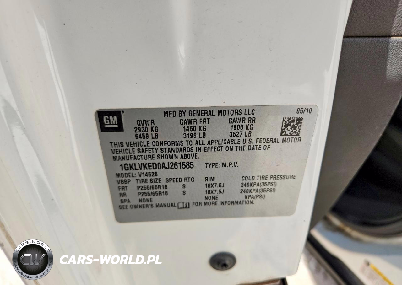 Copart Nr: C-49481306 VIN: 1GKLVKED0AJ261585 Port: Los Angeles, CA