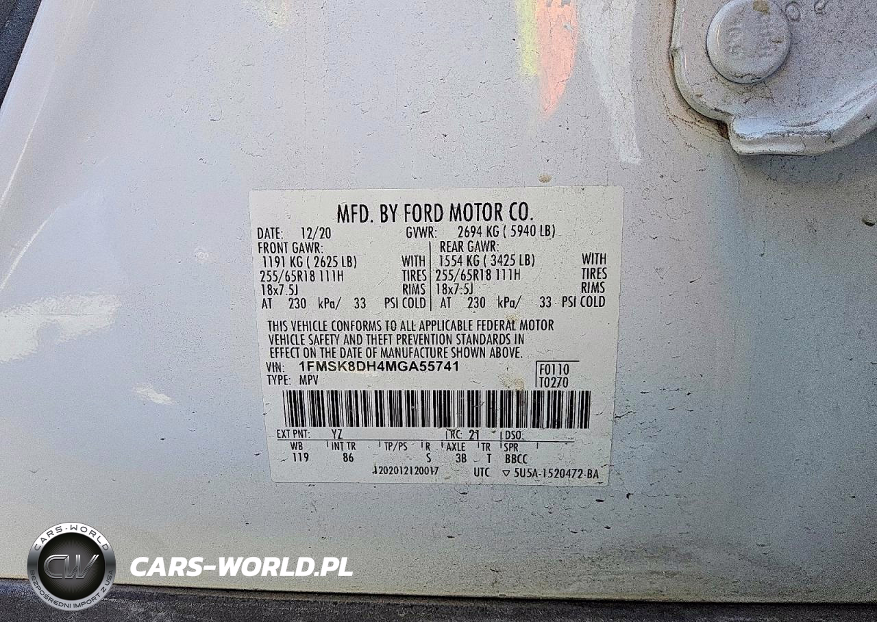 Copart Nr: C-49484996 VIN: 1FMSK8DH4MGA55741 Port: Savannah, GA