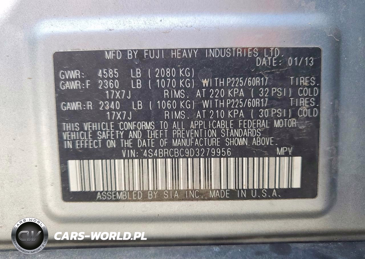 Copart Nr: C-49488266 VIN: 4S4BRCBC9D3279956 Port: Houston, TX
