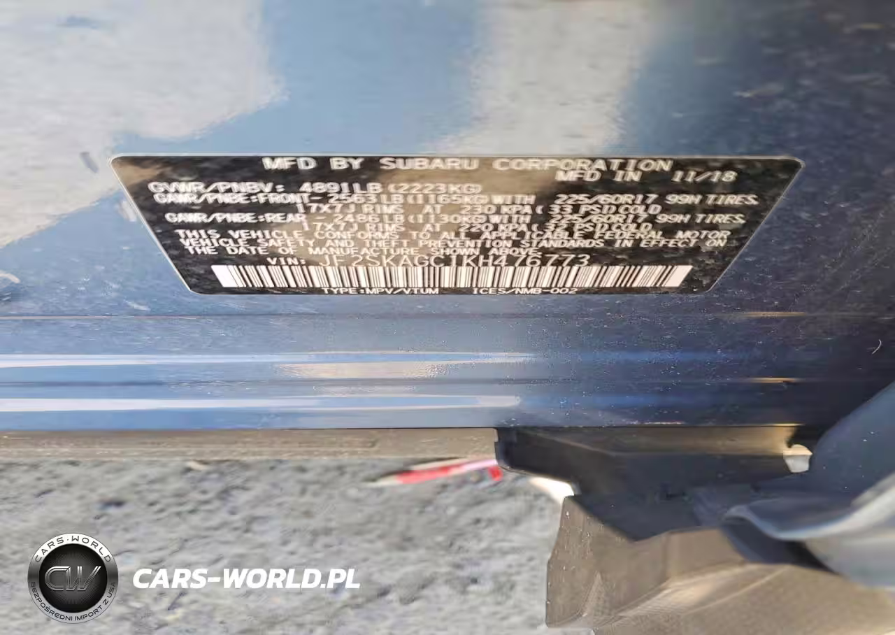Copart Nr: C-49491916 VIN: JF2SKAGC1KH476773 Port: Elizabeth, NJ