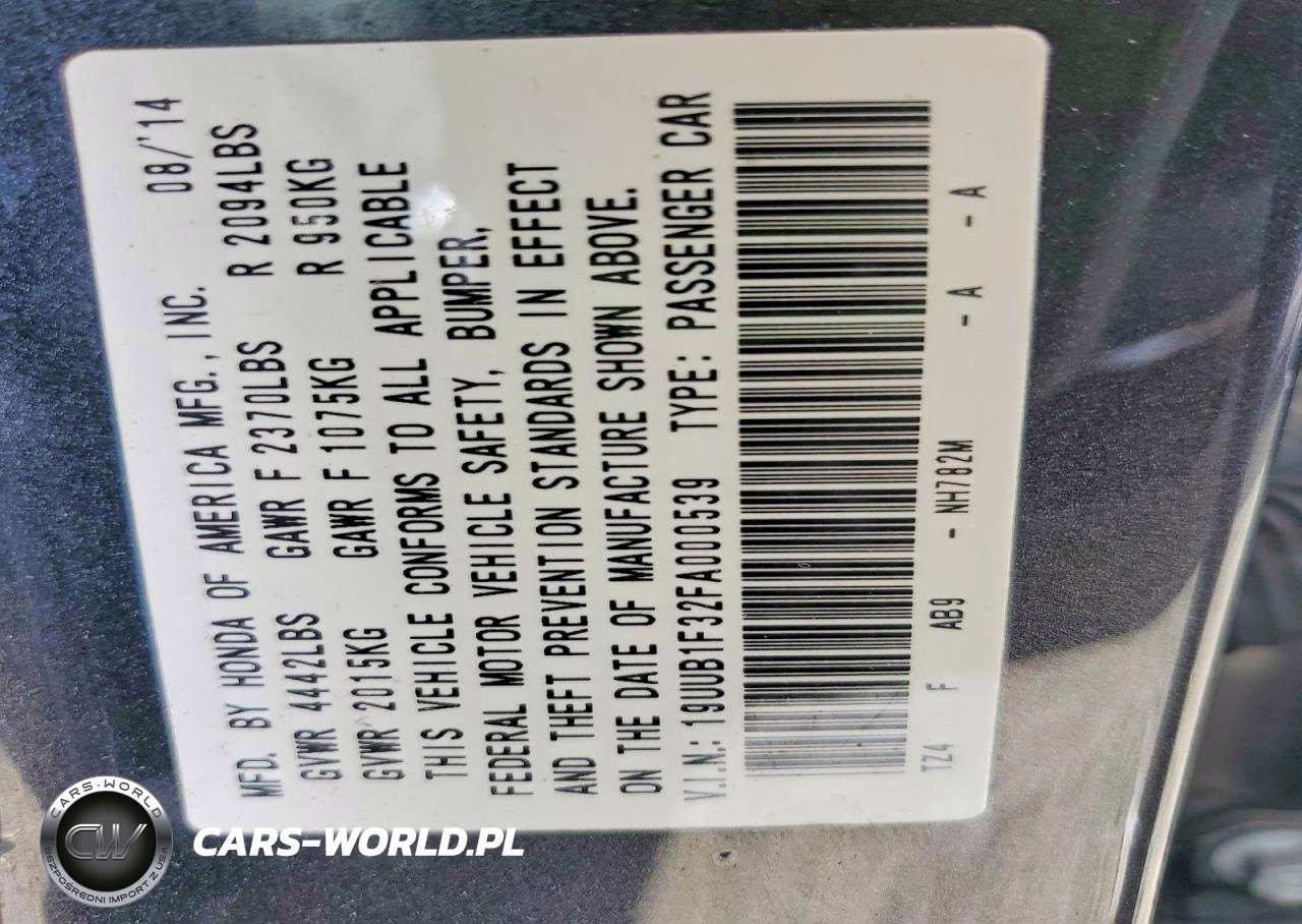 Copart Nr: C-49503446 VIN: 19UUB1F32FA000539 Port: Los Angeles, CA