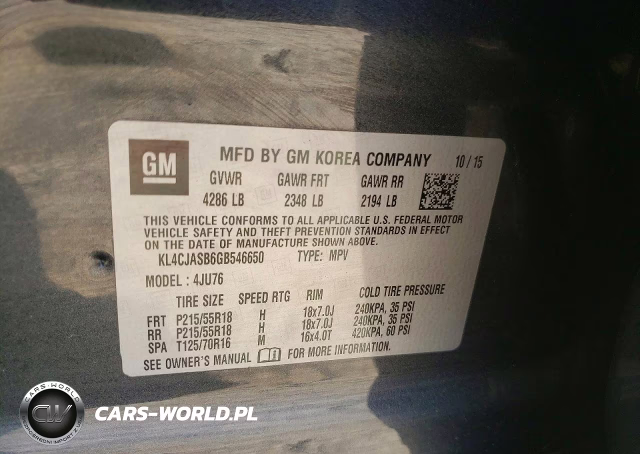 Copart Nr: C-49503636 VIN: KL4CJASB6GB546650 Port: Elizabeth, NJ