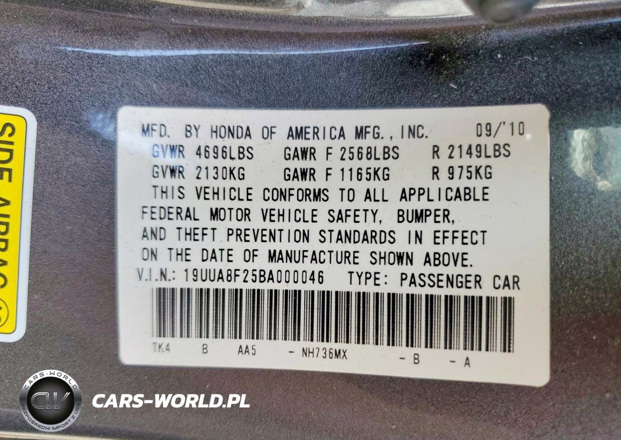 Copart Nr: C-49505856 VIN: 19UUA8F25BA000046 Port: Elizabeth, NJ