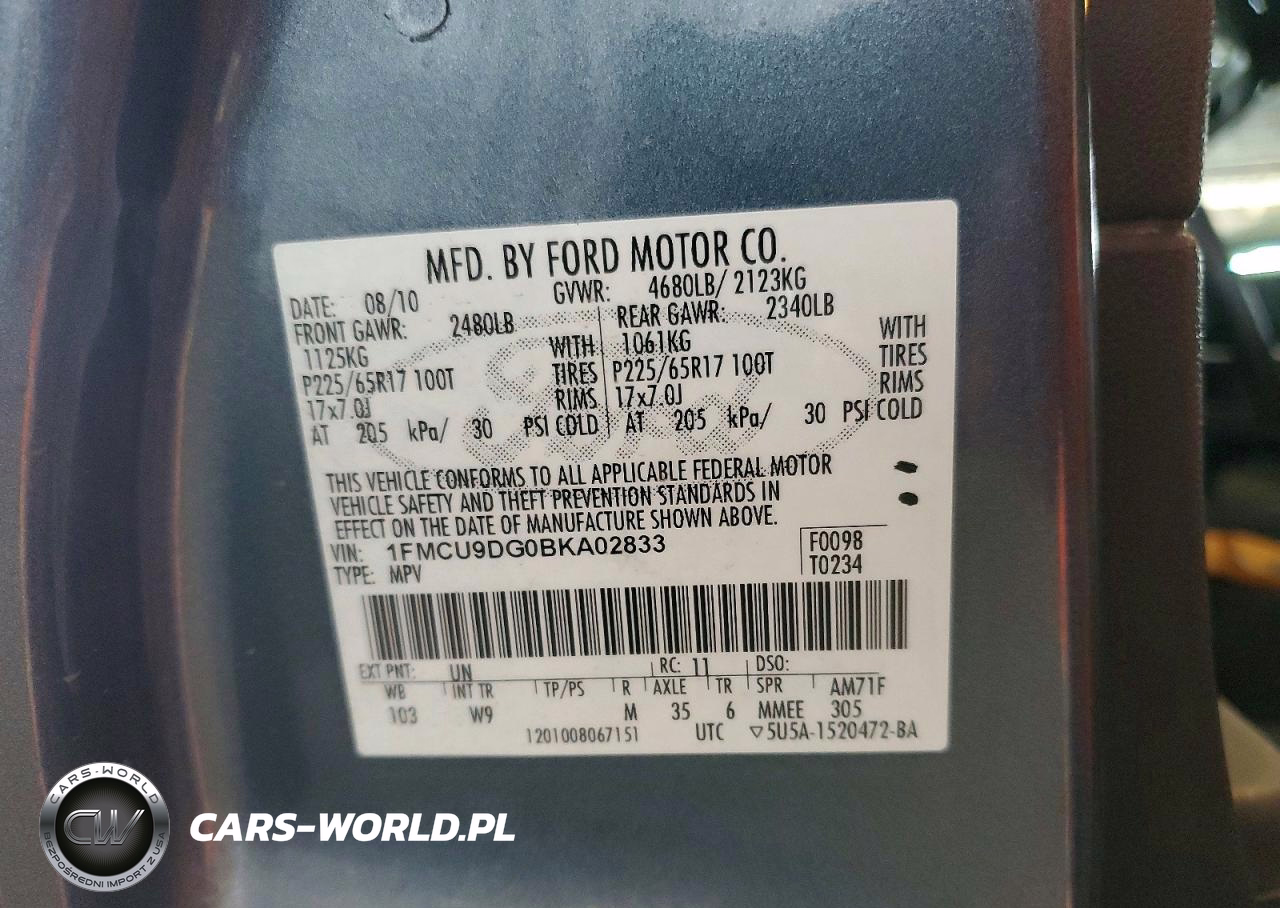 Copart Nr: C-49508316 VIN: 1FMCU9DG0BKA02833 Port: Los Angeles, CA