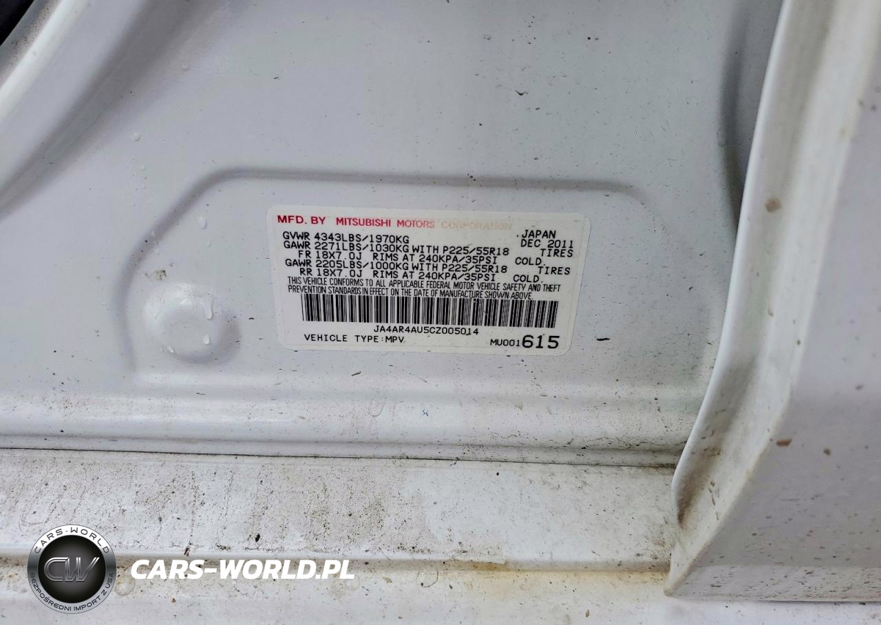 Copart Nr: C-49508936 VIN: JA4AR4AU5CZ005014 Port: Indianapolis, IN