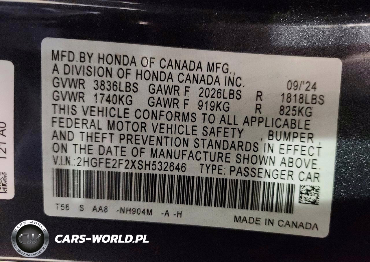 Copart Nr: C-49534656 VIN: 2HGFE2F2XSH532646 Port: Elizabeth, NJ