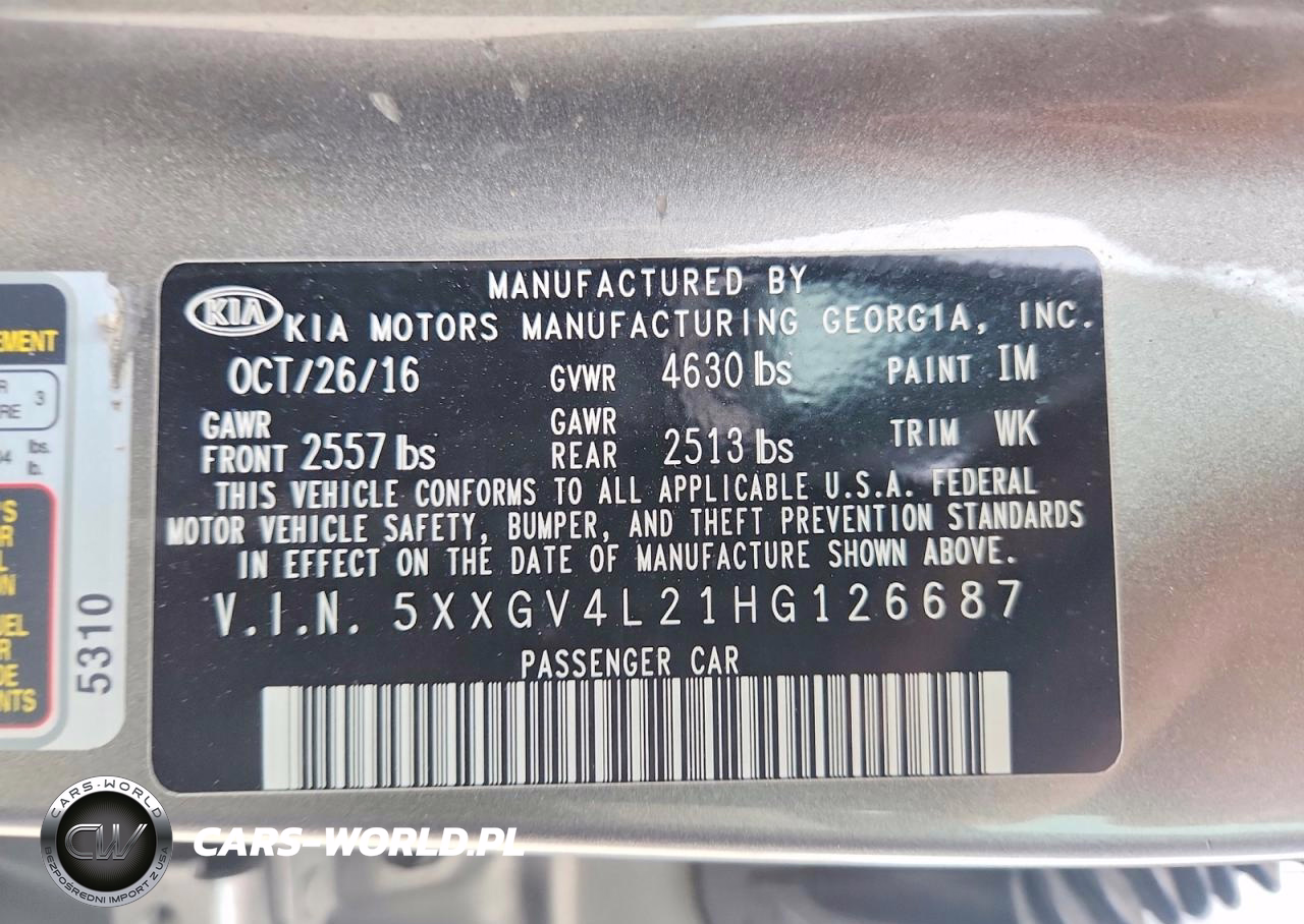 Copart Nr: C-49541576 VIN: 5XXGV4L21HG126687 Port: Houston, TX