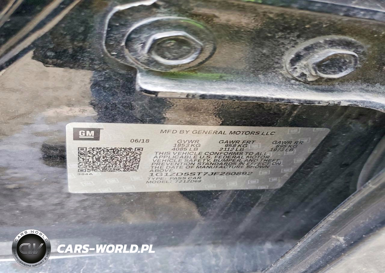 Copart Nr: C-49549536 VIN: 1G1ZD5ST7JF250892 Port: Indianapolis, IN