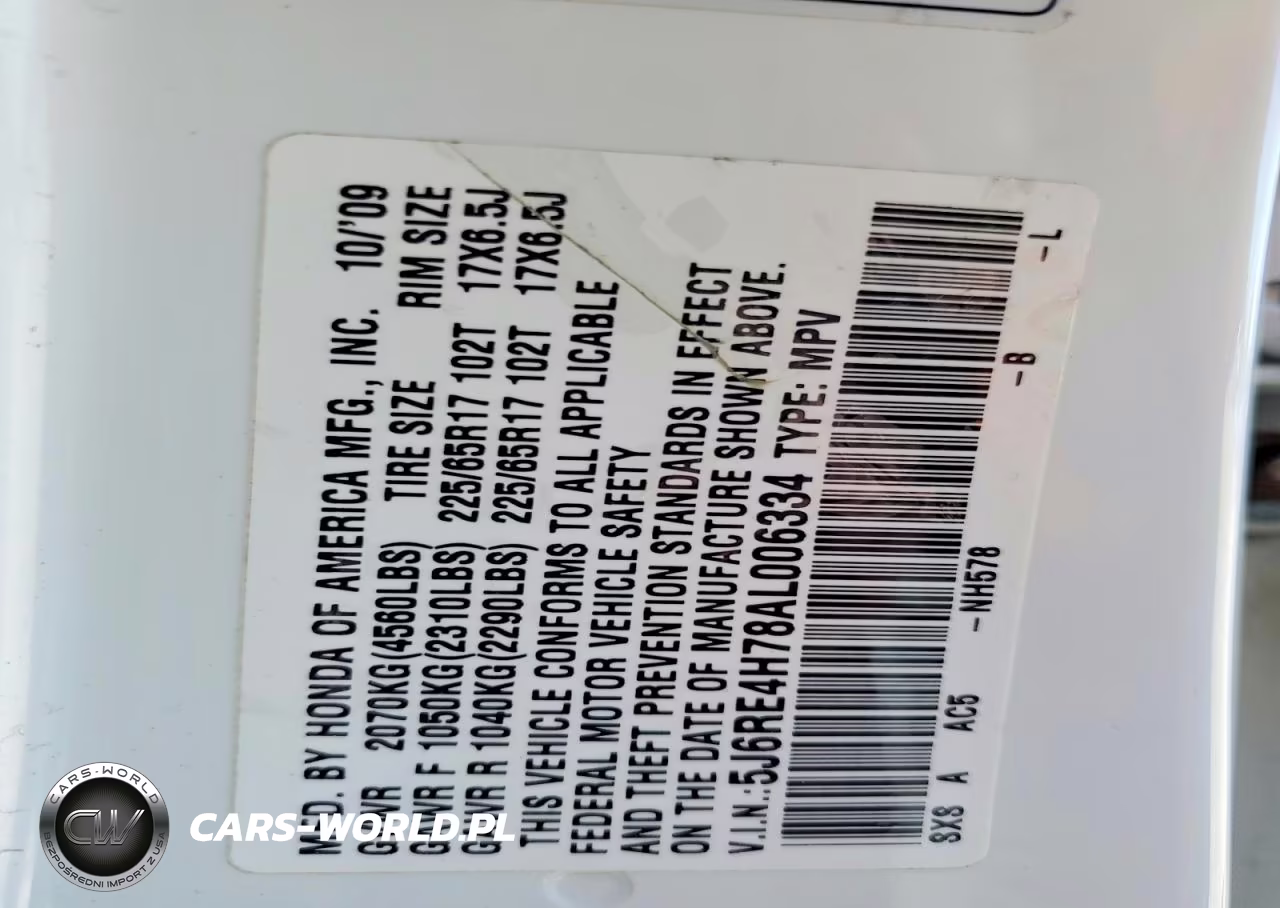 Copart Nr: C-49549826 VIN: 5J6RE4H78AL006334 Port: Elizabeth, NJ