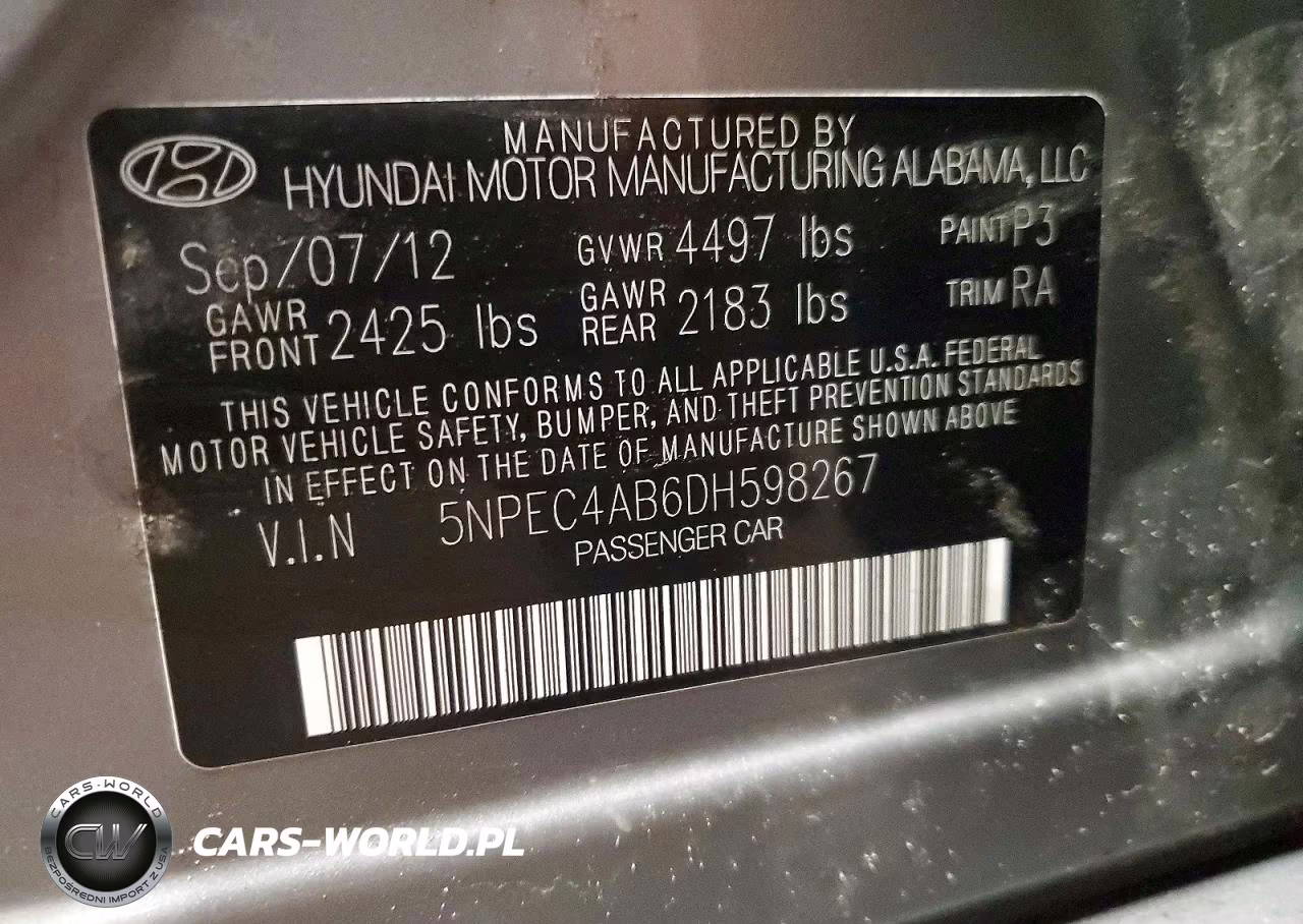 Copart Nr: C-49550426 VIN: 5NPEC4AB6DH598267 Port: Indianapolis, IN