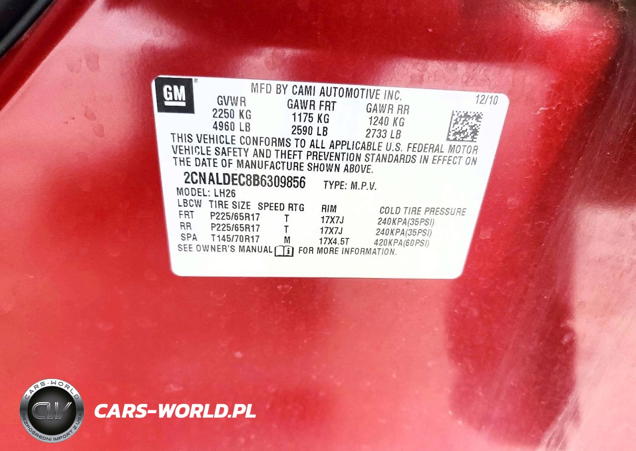 Copart Nr: C-49551596 VIN: 2CNALDEC8B6309856 Port: Indianapolis, IN