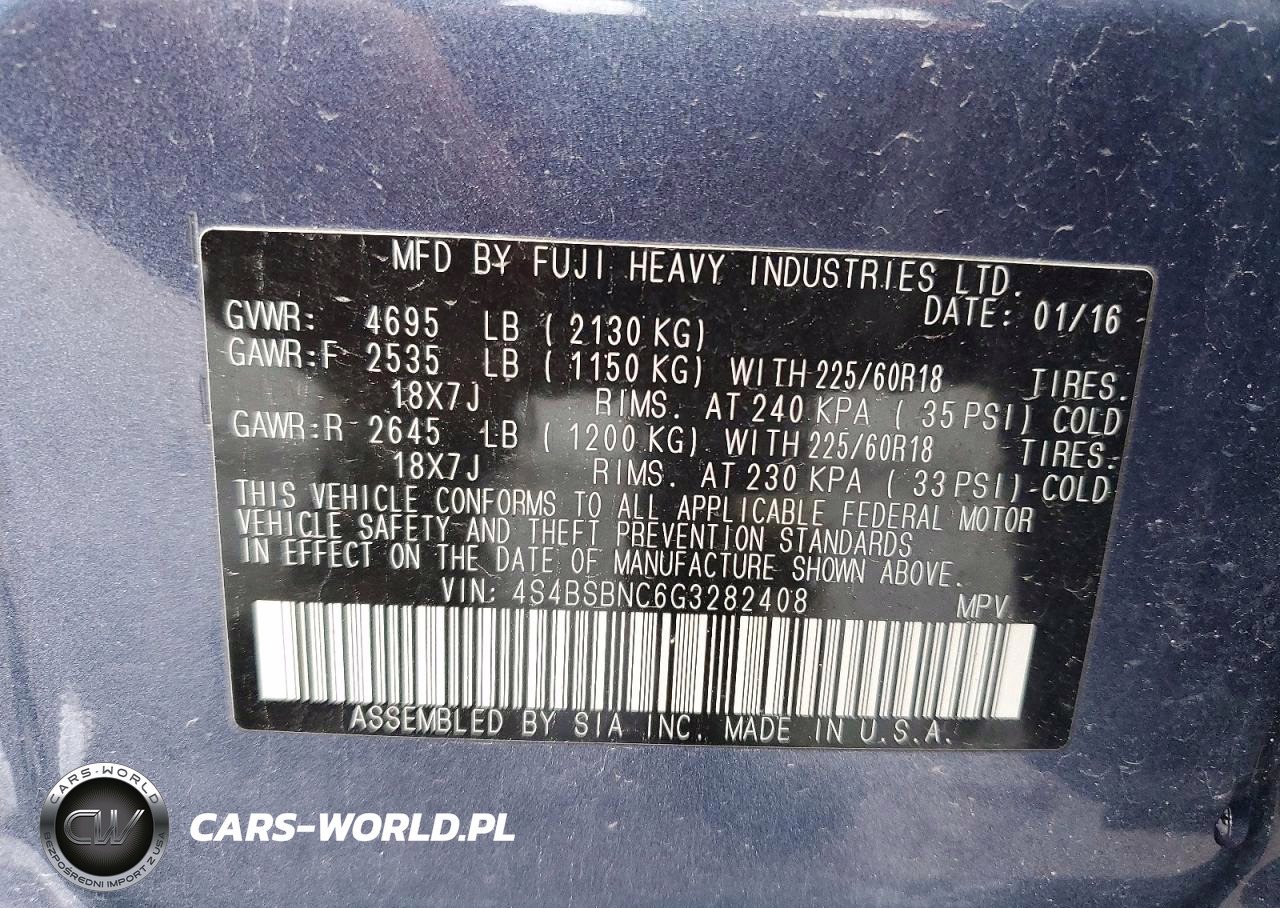 Copart Nr: C-49556206 VIN: 4S4BSBNC6G3282408 Port: Indianapolis, IN