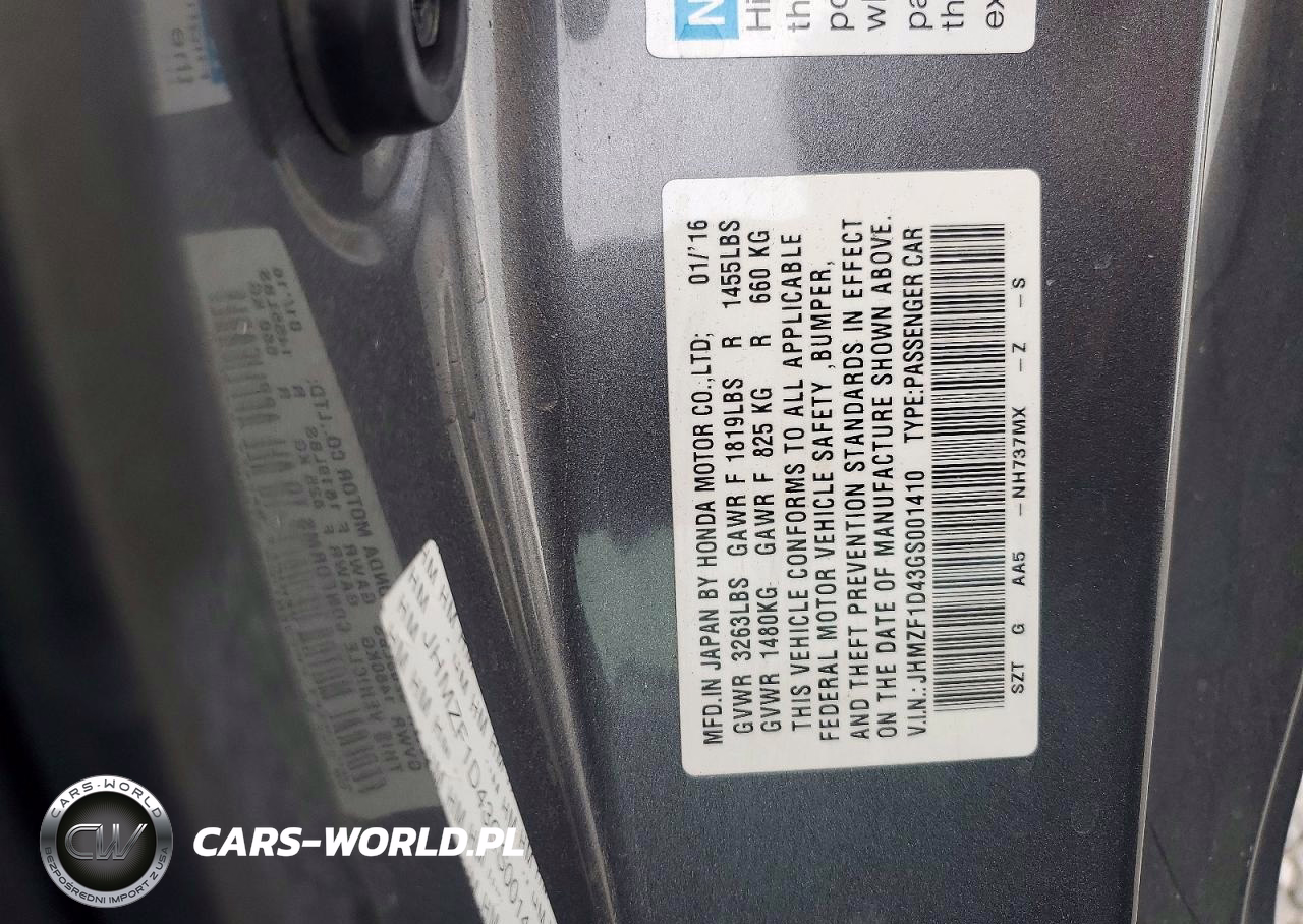 Copart Nr: C-49559786 VIN: JHMZF1D43GS001410 Port: Los Angeles, CA