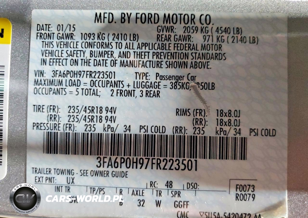 Copart Nr: C-49573306 VIN: 3FA6P0H97FR223501 Port: Indianapolis, IN