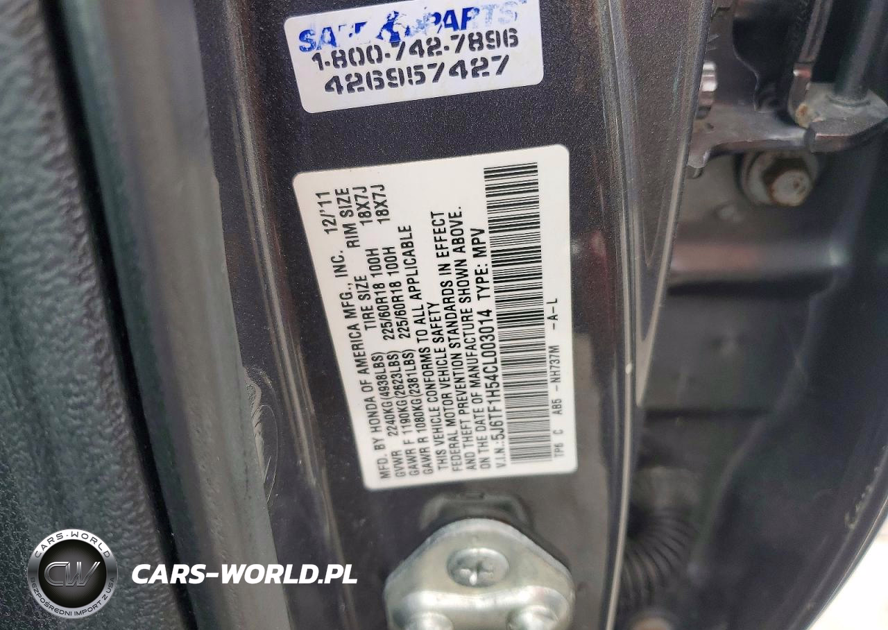 Copart Nr: C-49573346 VIN: 5J6TF1H54CL003014 Port: Savannah, GA