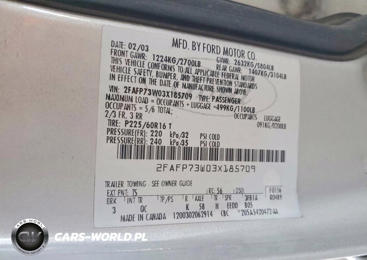 Copart Nr: C-49582846 VIN: 2FAFP73W03X185709 Port: Los Angeles, CA