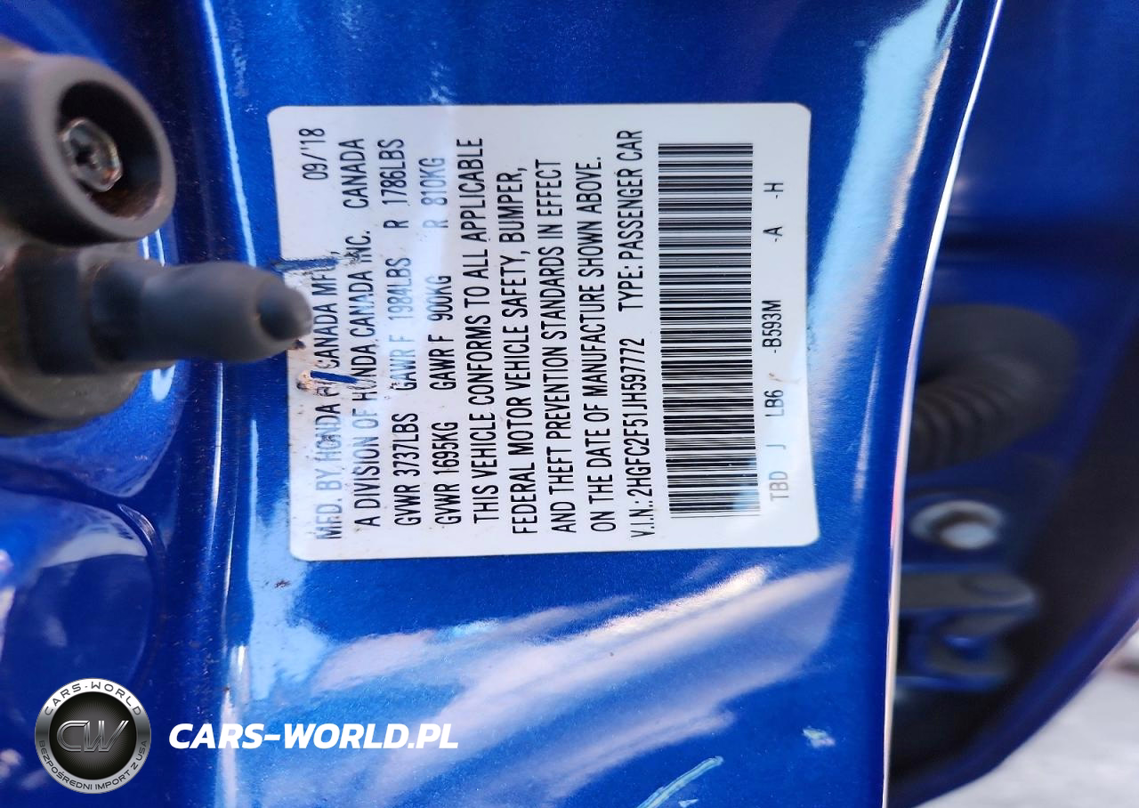 Copart Nr: C-49586936 VIN: 2HGFC2F51JH597772 Port: Los Angeles, CA