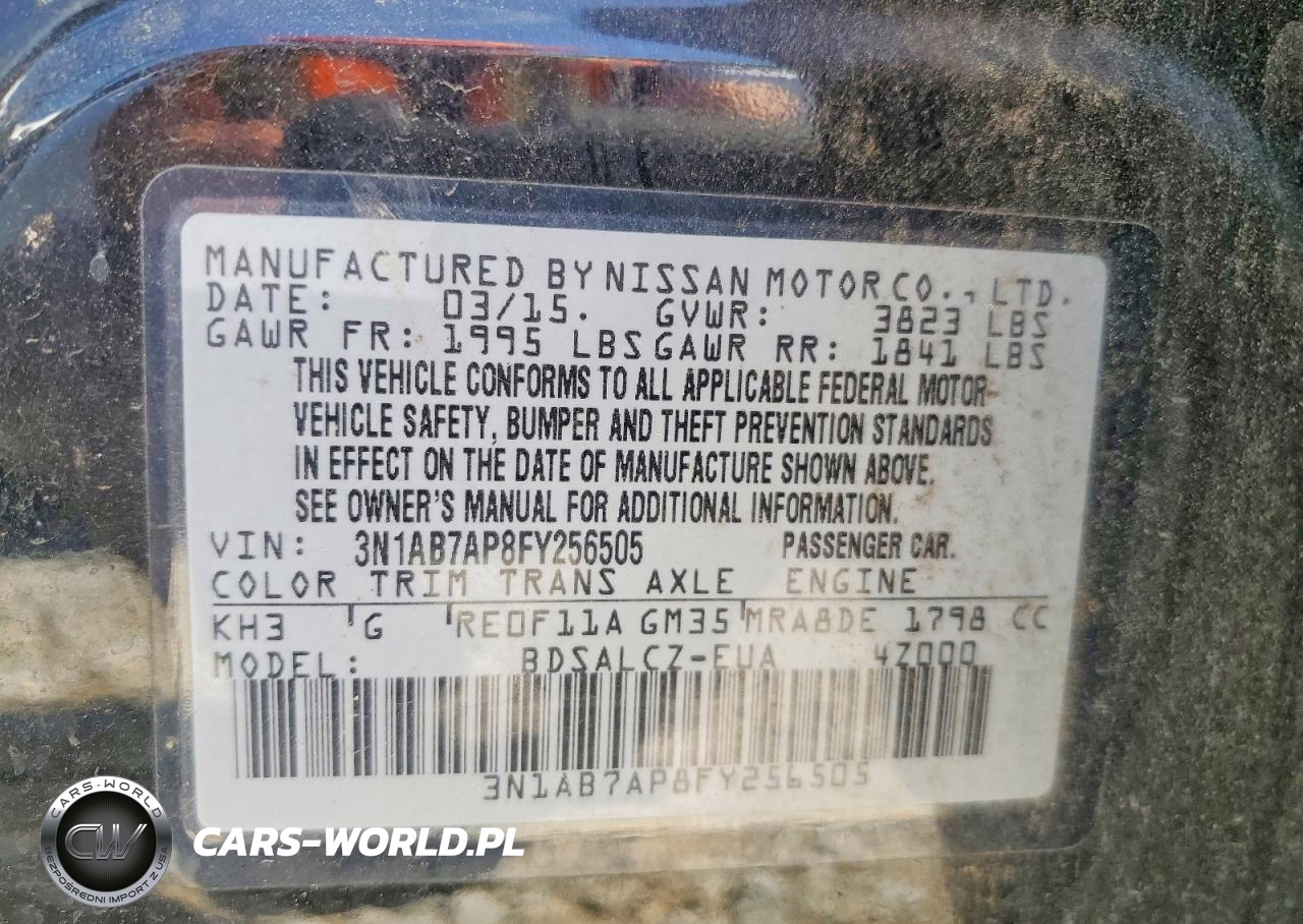 Copart Nr: C-49604376 VIN: 3N1AB7AP8FY256505 Port: Savannah, GA