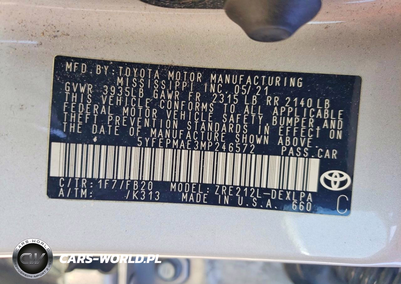 Copart Nr: C-49605456 VIN: 5YFEPMAE3MP246572 Port: Elizabeth, NJ