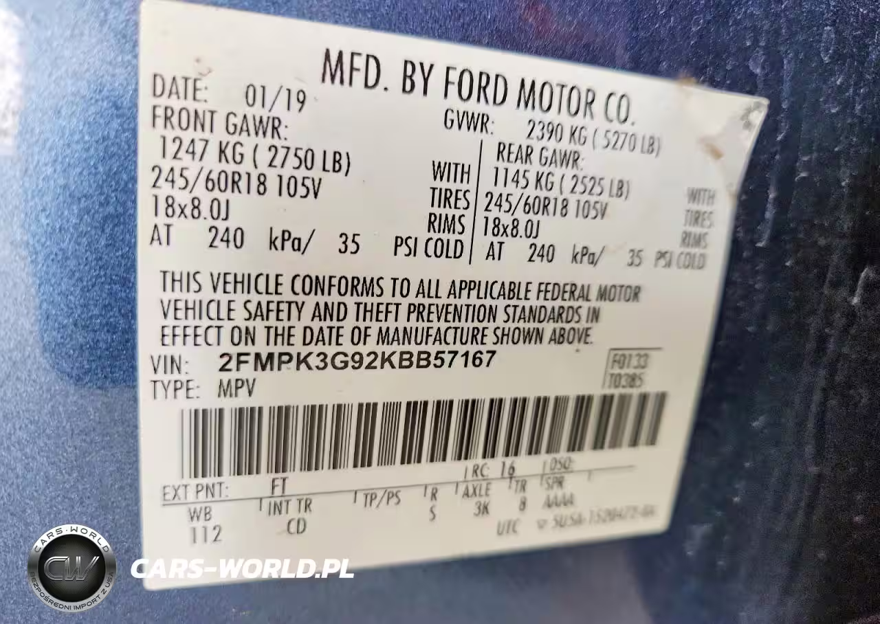 Copart Nr: C-49620926 VIN: 2FMPK3G92KBB57167 Port: Indianapolis, IN