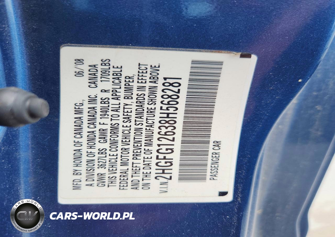 Copart Nr: C-49621016 VIN: 2HGFG12638H568281 Port: Houston, TX