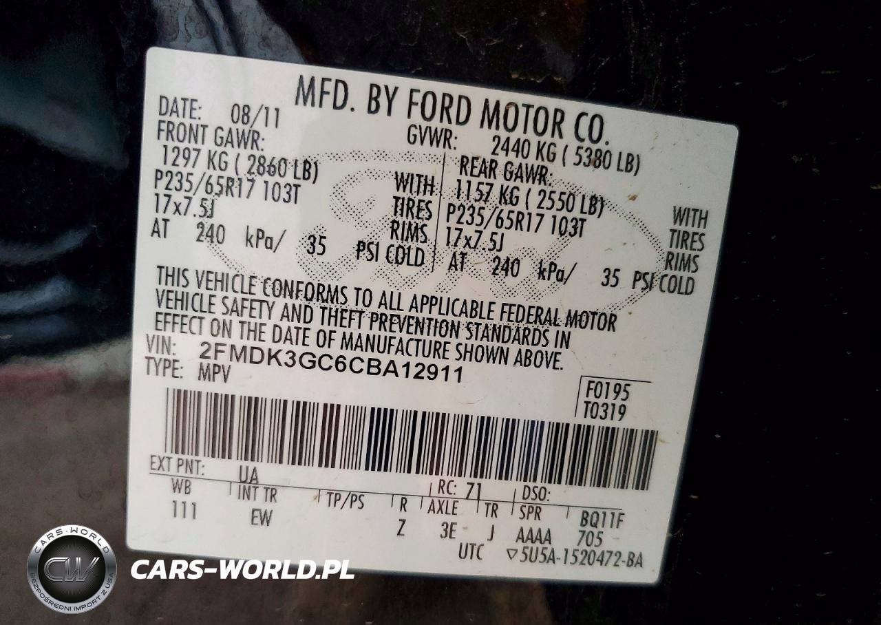 Copart Nr: C-49623366 VIN: 2FMDK3GC6CBA12911 Port: Los Angeles, CA