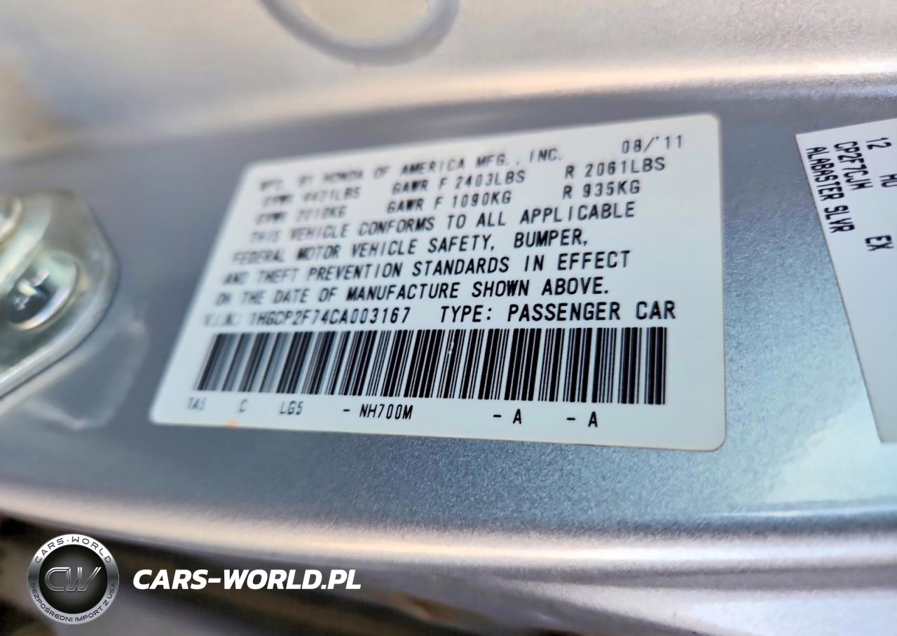 Copart Nr: C-49629216 VIN: 1HGCP2F74CA003167 Port: Los Angeles, CA