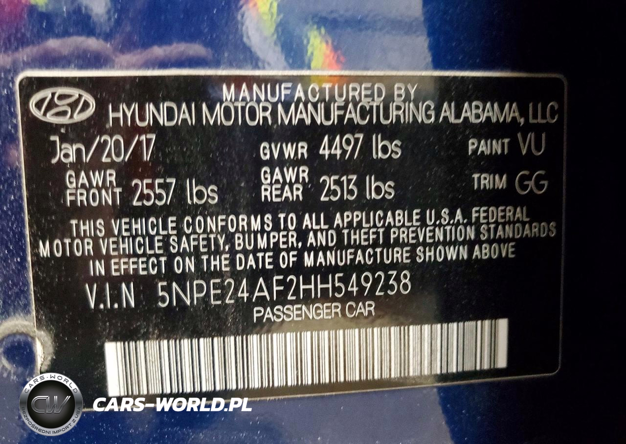 Copart Nr: C-49653986 VIN: 5NPE24AF2HH549238 Port: Indianapolis, IN