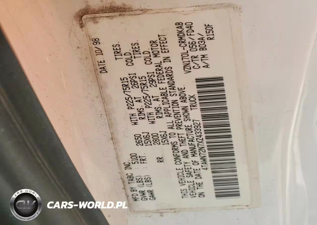 Copart Nr: C-49660076 VIN: 4TAWN72N7XZ433927 Port: Los Angeles, CA