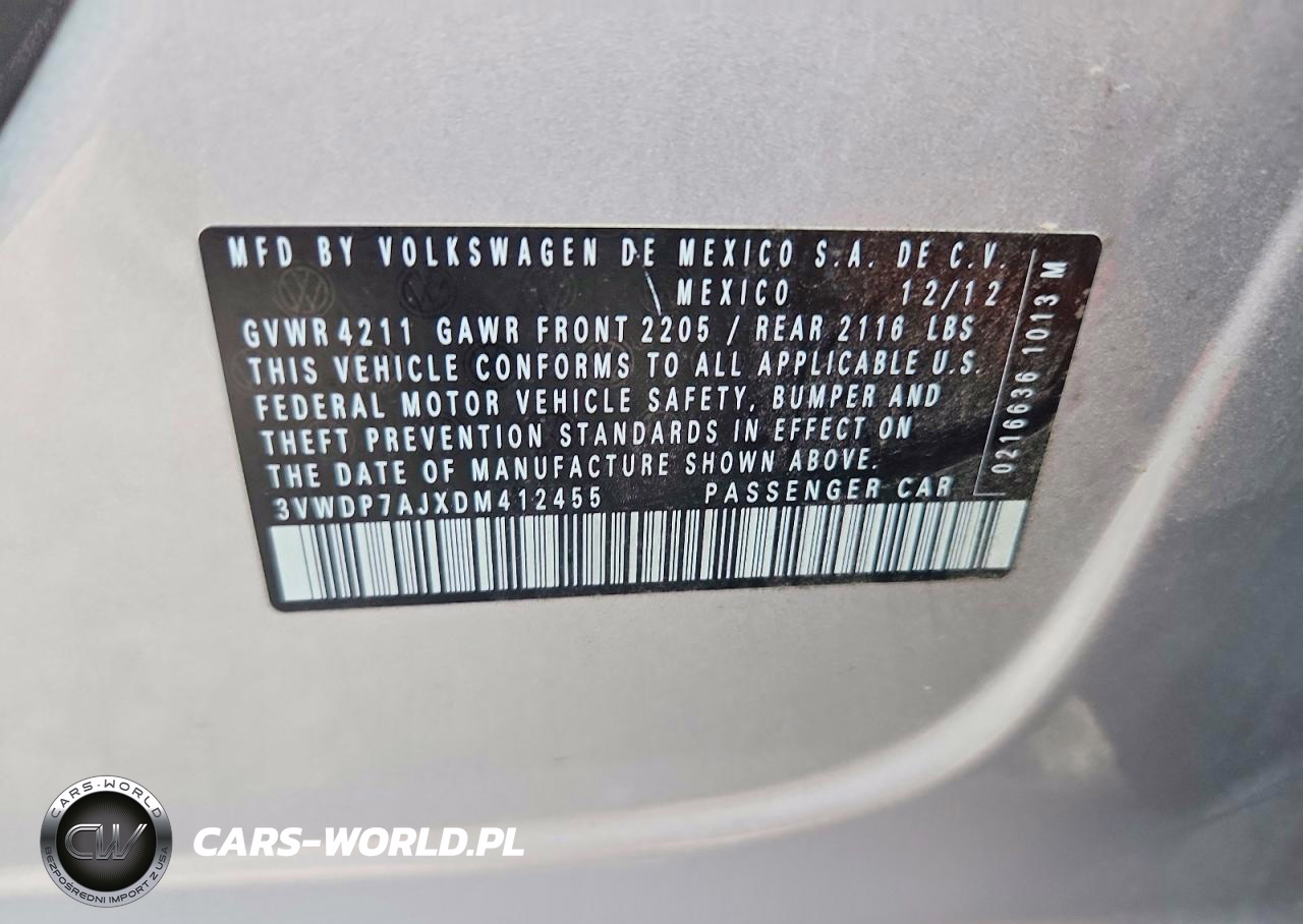 Copart Nr: C-49687026 VIN: 3VWDP7AJXDM412455 Port: Los Angeles, CA